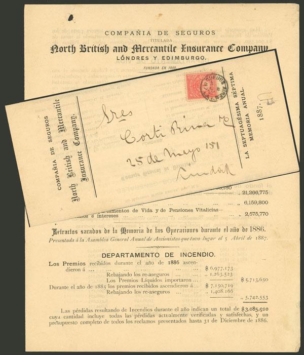 GJ.78, 1884 Little Envelope 1c. franking ALONE a printed document posted in Buenos Aires on 25/JUL/1887. The publication is a balance sheet of the North British and Mercantile insurance company, excellent quality! (Image)