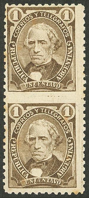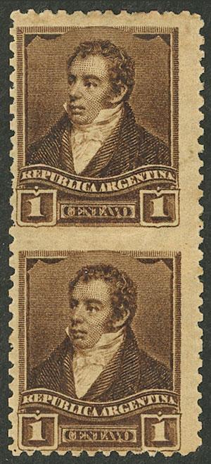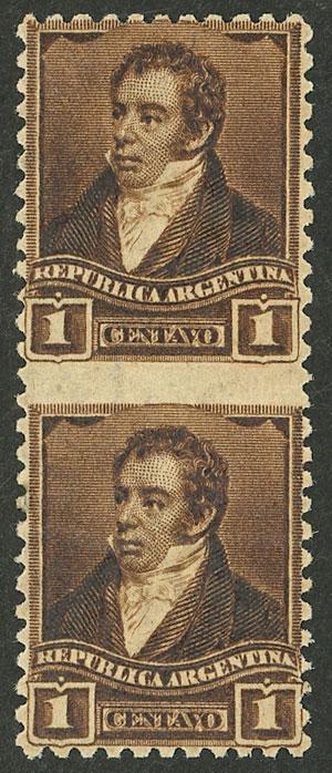 GJ.175PH, 1896 1c. Belgrano, vertical pair IMPERFORATE BETWEEN, very fine quality, rare! (Image)