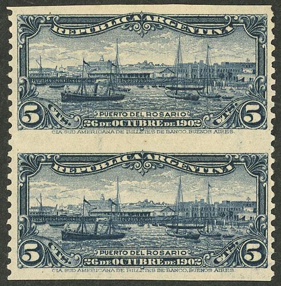 GJ.273PH, 1902 Port of Rosario, pair imperforate horizontally, excellent quality, rare! (Image)