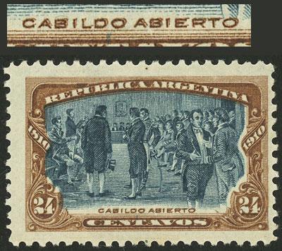 GJ.309b, 1910 24c. Centenary with variety "Double impression (reentry) of CABILDO ABIERTO", excellent quality! (Image)