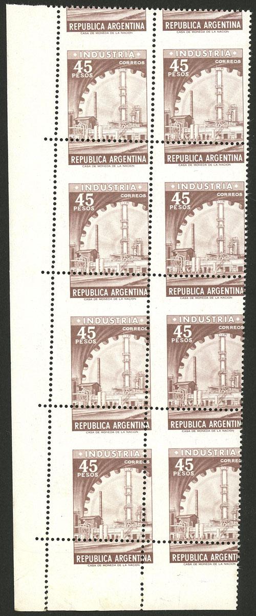 GJ.1315, 45P. Industry, block of 8 stamps with DRAMATICALLY SHIFTED perforation, spectacular! (Image)