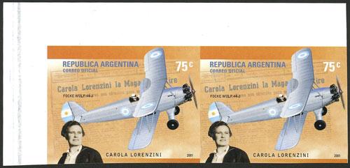 GJ.3166P, 2001 Pilot Carola Lorenzini and airplane Wulf 44-J, IMPERFORATE PAIR, excellent quality, rare! (Image)