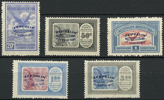 GJ.660/4, 1930 Zeppelin, complete set of 5 values with blue overprint, MNH (+50%), scarce in this outstanding quality! (Image)