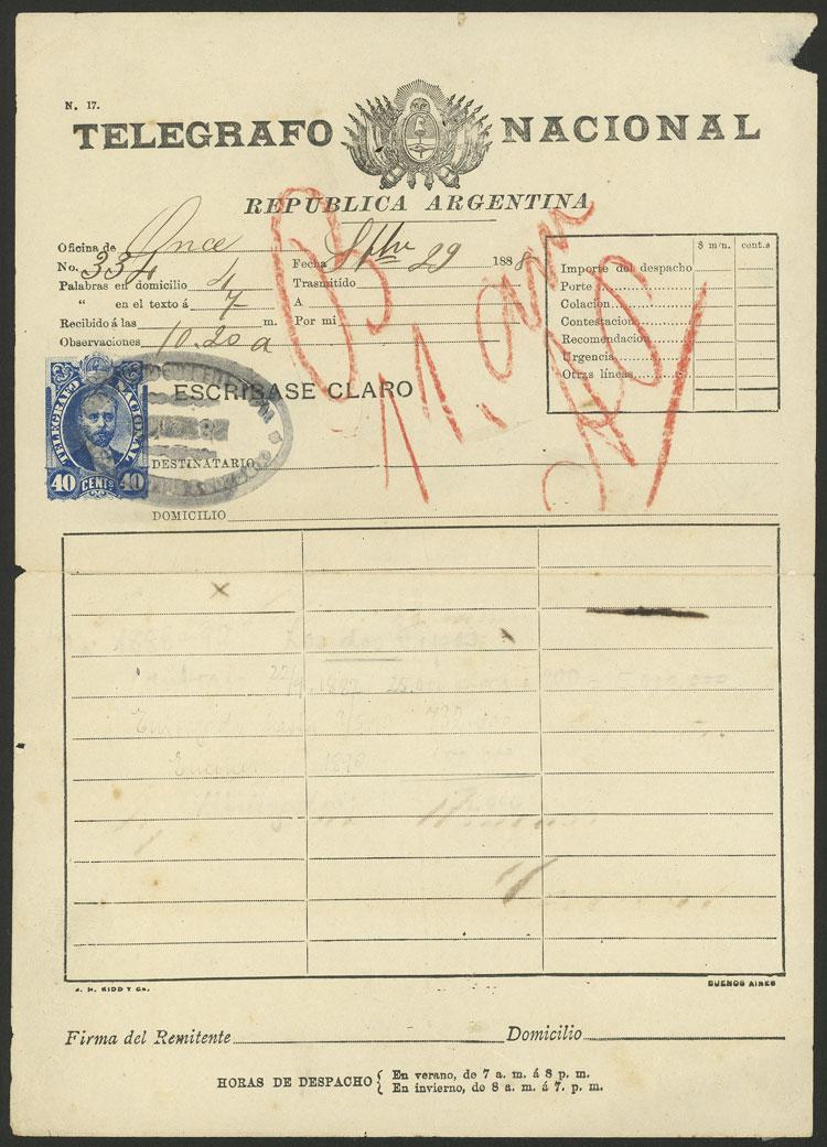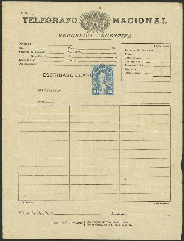 GJ.TEL-1, 1888 Juárez Celman 40c. with the stamp printed on the left, used, tiny defect, rare! (Image)