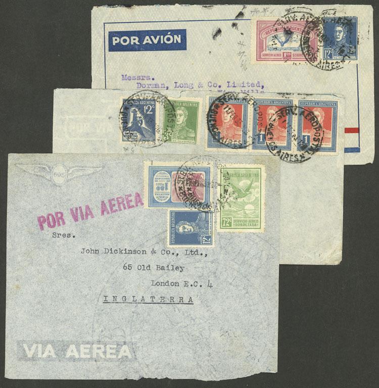 3 Airmail covers sent from Buenos Aires to England in 1932/3 franked with 3.15P, 2.64P. and 1.20P, nice lot! (Image)