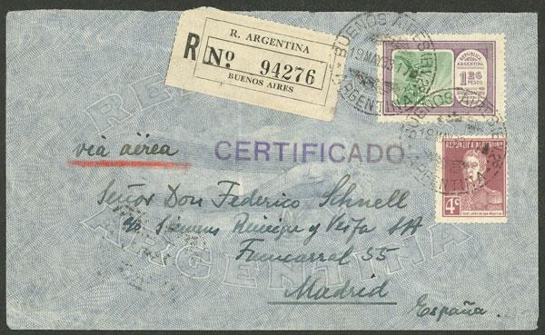 19/MAY/1933 Buenos Aires - Spain, registered airmail cover, franked with 1.30P., on back marks of Barcelona (29/MAY) and Madrid (30/MAY), excellent quality! (Image)