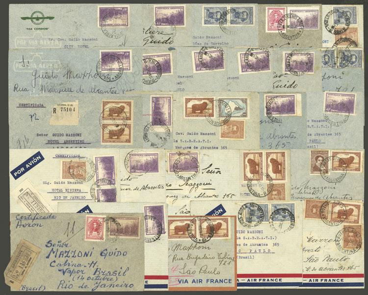 24 Airmail covers sent to Brazil, Uruguay etc. between 1939 and 1940, there are attractive postage combinations and varied rates, very fine general quality! ATTENTION: please view ALL the photos of the lot, because all the covers have been scanned (both sides) (Image)