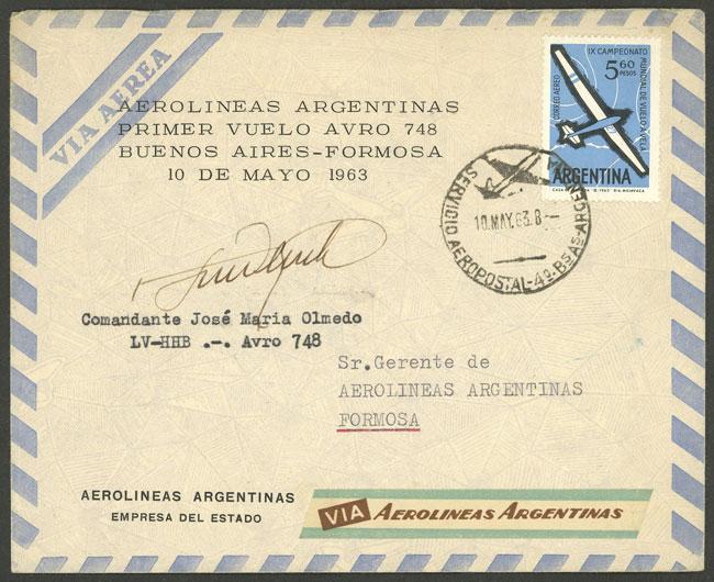 10/MAY/1963 Buenos Aires - Formosa, first flight of Aerolíneas Argentinas, signed by the pilot, arrival backstamp, VF quality, rare! (Image)