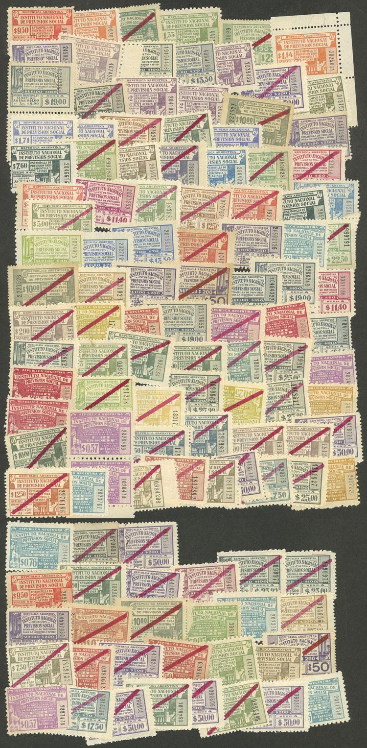 Envelope containing over 120 revenue stamps of Previsión Social, MNH, in general of very fine quality, little duplication, rare lot! (Image)