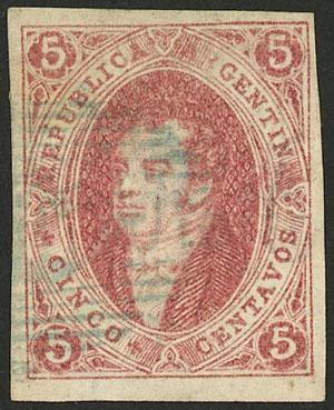 GJ.5, bluish green, type 4, with CORRIENTES large arch (+50%), huge margins, very fresh, superb example, rare!! (Image)