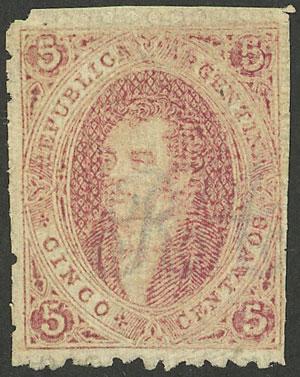 GJ.16, 1st printing imperforate, 5c. clear impression, splendid stamp of huge margins, very fresh and beautiful color, perfect, one of the best examples in existence! (Image)