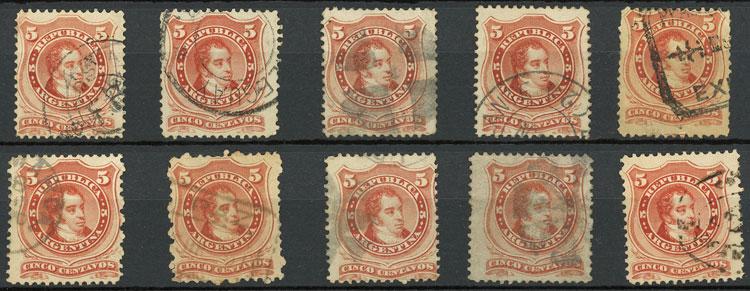 RARE and scarce cancels: GJ.38, 10 examples with very interesting cancels, in general of fine to excellent quality, good opportunity (with a value of between US$10 and 50 each!) (Image)