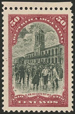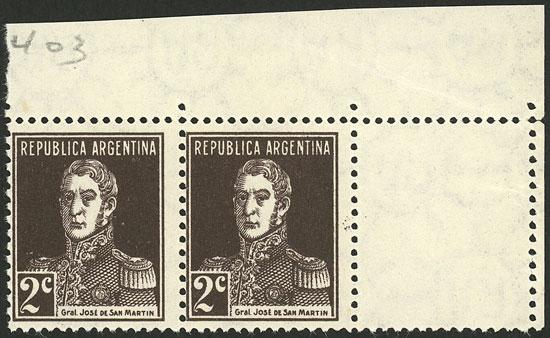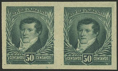 GJ.147P, 1892 50c. Belgrano with small sun wmk, IMPERFORATE PAIR, MNH (+50%). It is one of the few known examples with original gum (from a recent find, until now it was only known without gum!), superb, rare!! (Image)