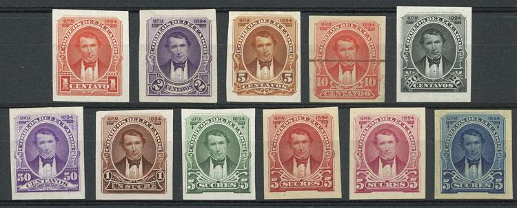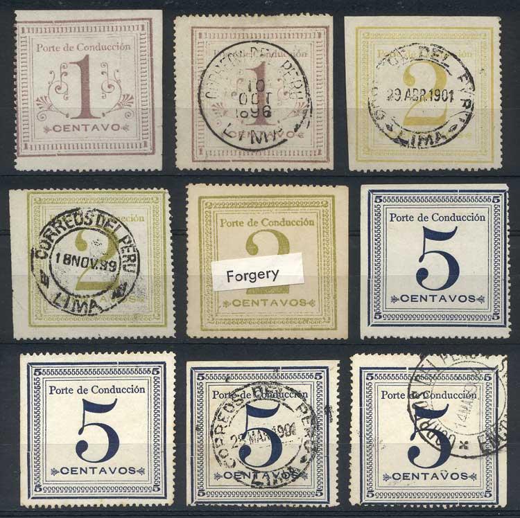 Sc.Q1/Q3, 1c. mint and used + 2c. used x2 (different colors) and one forged example + 5c. x2 mint and 2 used, all of VF quality, rare! (Image)