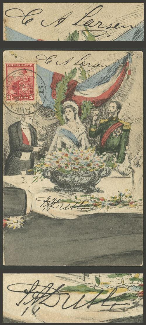 Postcard used in Buenos Aires on 8/DE/1903 with manuscript signatures of SAMUEL DUSSE and CARL LARSEN (Swedish expedition to the South Pole), excellent quality! (Image)
