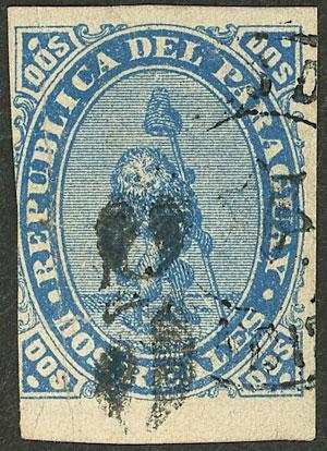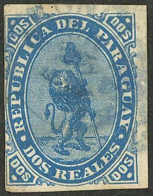 Yvert 5I (Sc.5), 1878 5 on 2R. blue, used with cancel of Asunción, vertical crease, else very fine, rare! (Image)