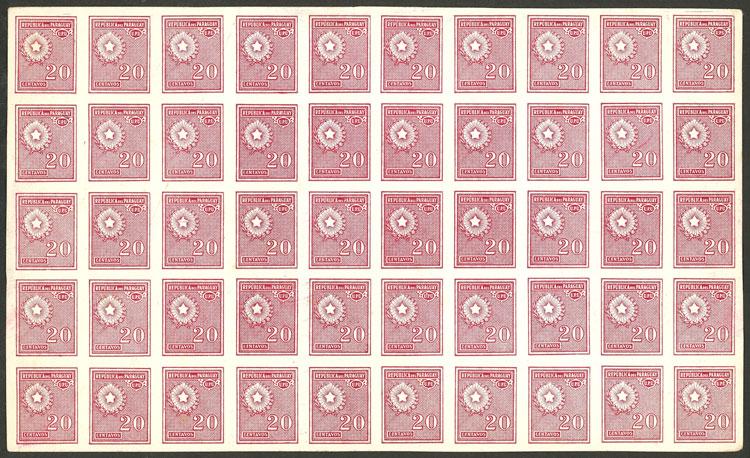 Sc.278, 1927/38 20c., PROOF in lilac-carmine, block of 50 printed on glazed card stock, with some crease of little importance, fantastic! (Image)