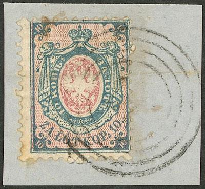 Sc.1, 1860 10k. blue and rose, on fragment, with a horizontal crease else excellent! (Image)
