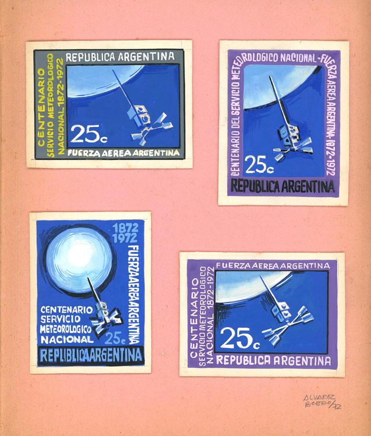 GREAT RARITY: GJ.1593, 1972 100th Anniversary of the National Weather Service of the Air Force, folder with the designs presented by the illustrator Álvarez Boero, including one similar to the adopted one. Excellent quality, unique and unrepeatable lot! (Image)
