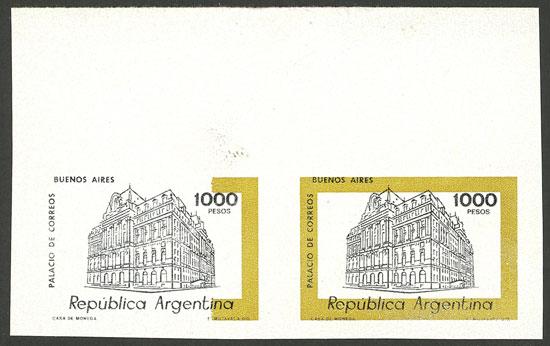 GJ.1850P, 1979/82 1000P. Colón Theater, IMPERFORATE pair, in the left stamp the ocher color is partially missing, extremely rare, MNH, excellent! (Image)