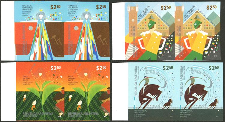 GJ.3897P/3900P, 2011 National festivals, the set of 4 in IMPERFORATE PAIRS, this variety will be included in the next edition of the GJ catalog, excellent quality, rare! (Image)