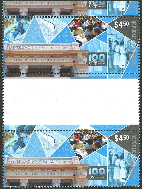 GJ.4047EN, 2014 University of Tucumán, GUTTER PAIR, one of only 4 known examples, extremely rare. NOTE: recent find, it will be included in the next edition of the GJ catalog. (Image)