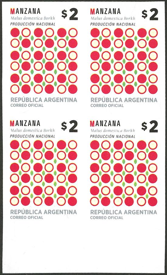 GJ.4155P, 2016 Apple 2$ IMPERFORATE BLOCK OF 4, very rare, only 20 known pairs (one sheet) (Image)