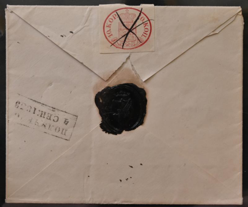 10 kopek carmine-rose, cut in oval shape, on a letter to Christinestad. Ink cross and Uleåborg 1858 (L. 2 g). Certificate: Schwenson (2024) (Image)