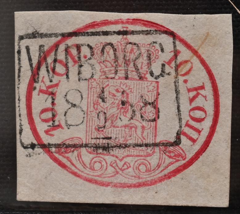 10 kopek red-carmine, octagonal on a fragment, superb Borgå 1858 - magnificent cancellation! (L. 2 f). Certificate: Schwenson (2024) (Image)