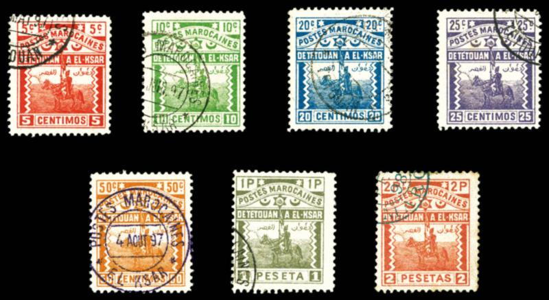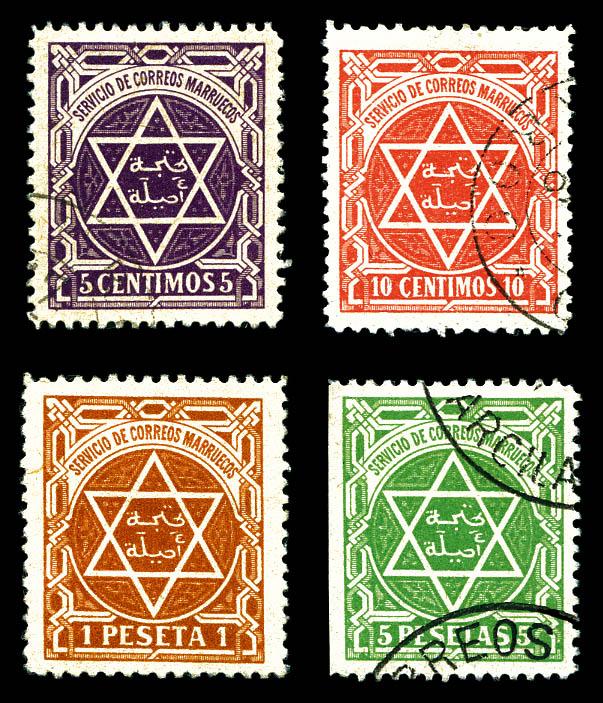 Tanger a Arzila dentelés 14: n°105a, 106a, 110a* et 112a (variété 1coté non dentelé). TB (certificat) Qualité: O Cote: 515 euros (Image)