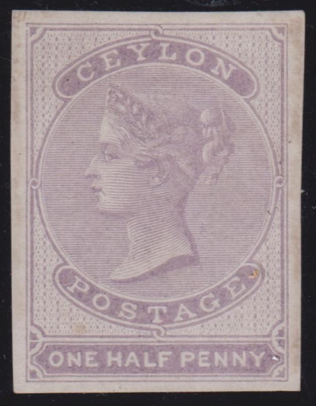 Ceylon 1858 ½d QV dull mauve, imperf, 4 margins. SG 17. Cat £200. Mint. (Image)