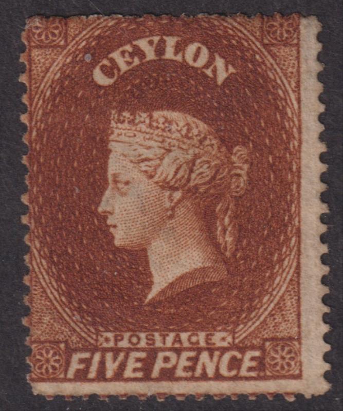 Ceylon 1861 5d QV chestnut, part gum. SG 22. Cat £120. Mint. (Image)