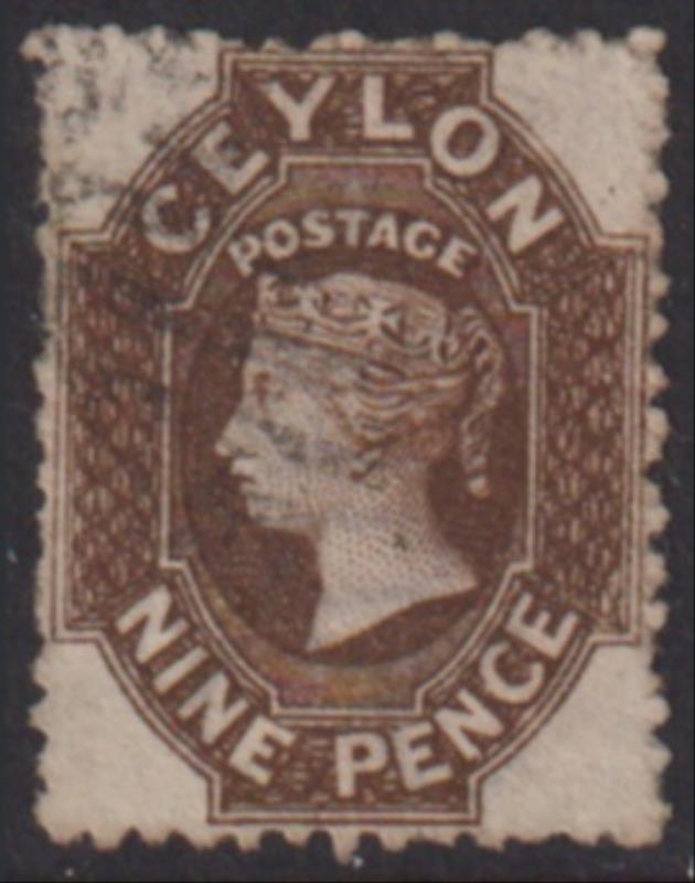 Ceylon 1868 9d QV bistre-brown, p12½, crown CC wmk. SG 69. Cat £40. FU. (Image)