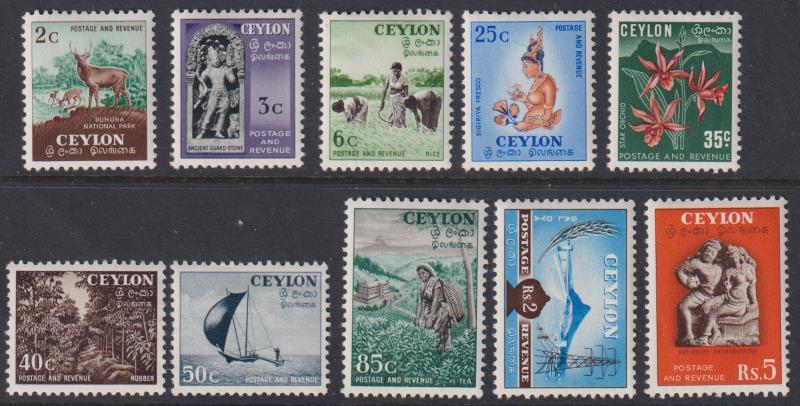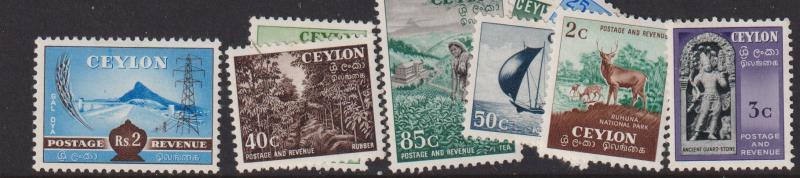 Ceylon 1951-4 GVI Pictorials short set of 9 to 2r (no 10c), plus 35c type II. SG 419-28, 424a. Cat £37+. Mint. (Image)