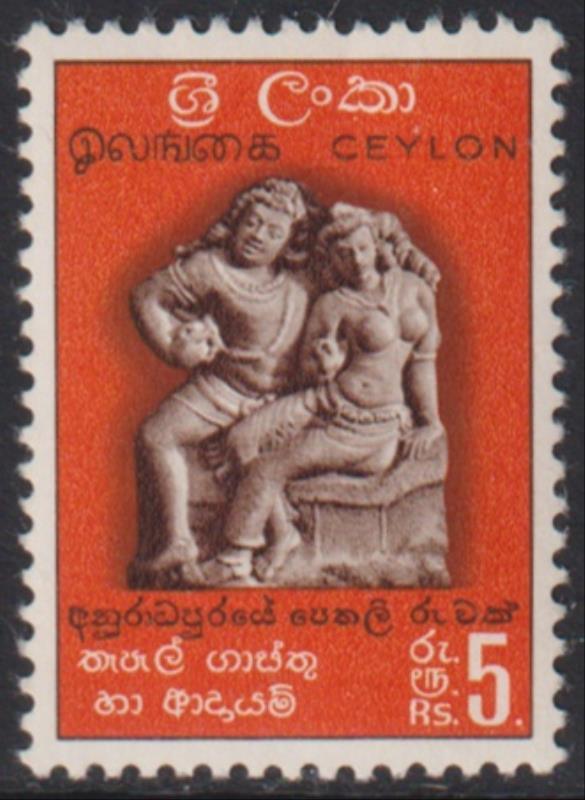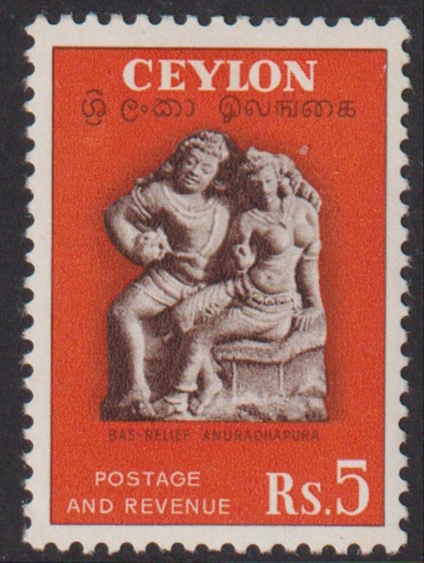 Ceylon 1958 5r Statue, redrawn inscriptions. SG 464. Cat £22. MUH. (Image)