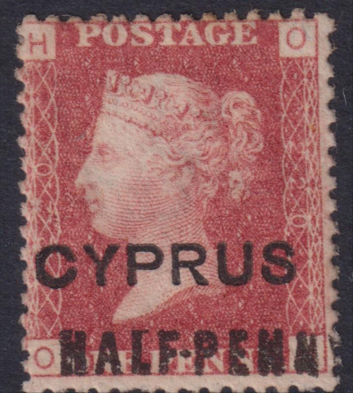 Cyprus 1881 ½d on 1d (OH), plate 220. SG 7. Cat £325. Mint. (Image)