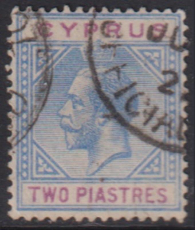 Cyprus 1921 2pi GV blue & purple, wmk multiple script CA. SG 92. Cat £30. FU. (Image)