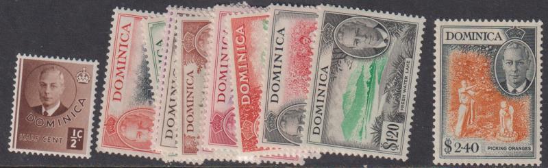 Dominica 1951 ½c to $2.40 GVI & Pictorials set (15V). SG 120-34. Cat £55. Mint. (Image)