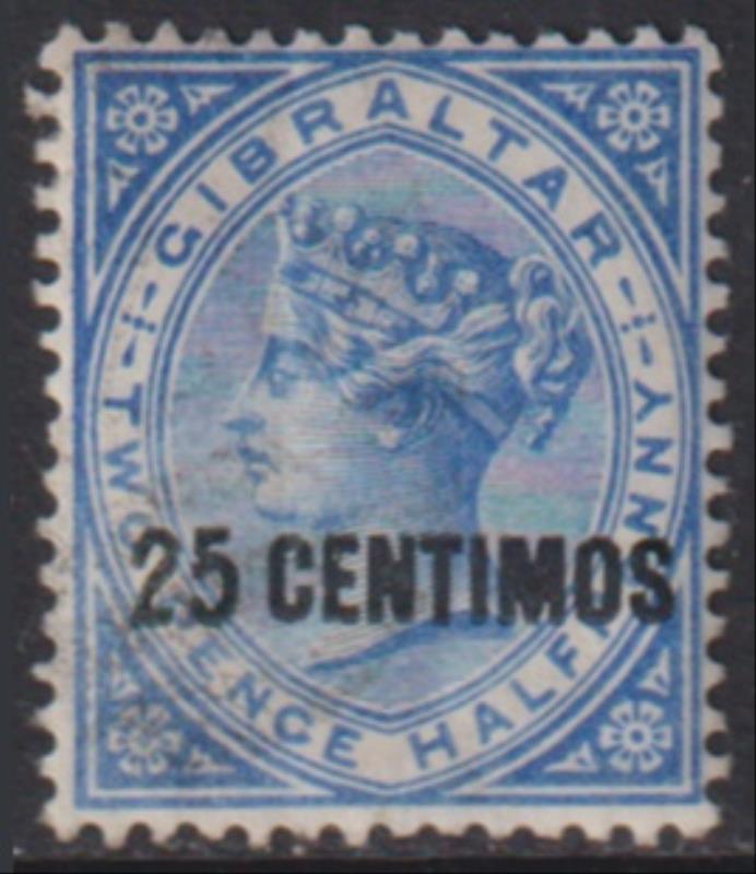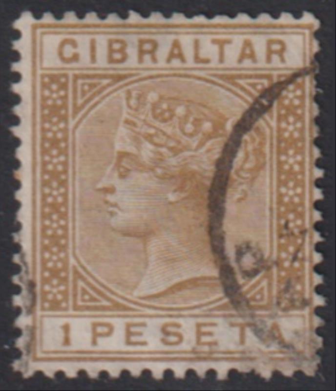 Gibraltar 1889 1pta QV bistre. SG 30. Cat £22. FU. (Image)