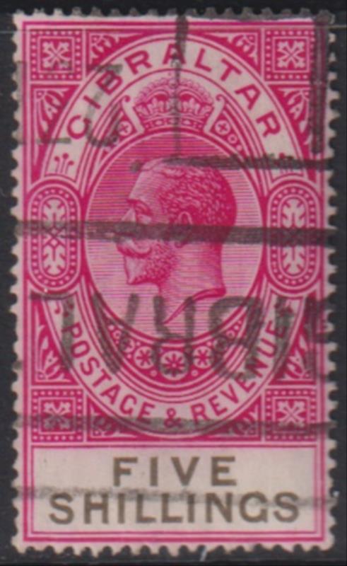 Gibraltar 1925 5/- GV scarlet & black. SG 105. Cat £75. GU. (Image)
