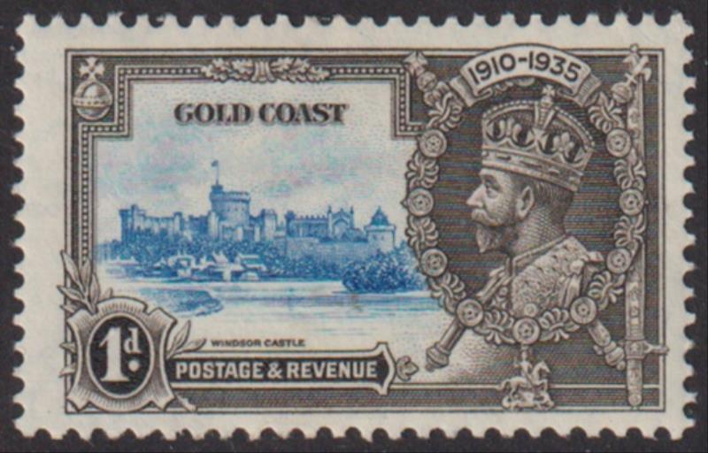 Gold Coast 1935 1d Silver Jubilee, lightning conductor variety. SG 113c. Cat £190. Mint. (Image)