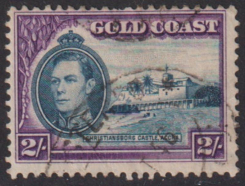 Gold Coast 1940 2/- GVI & Castle, p11½ x 12. SG 130a. Cat £25. FU. (Image)