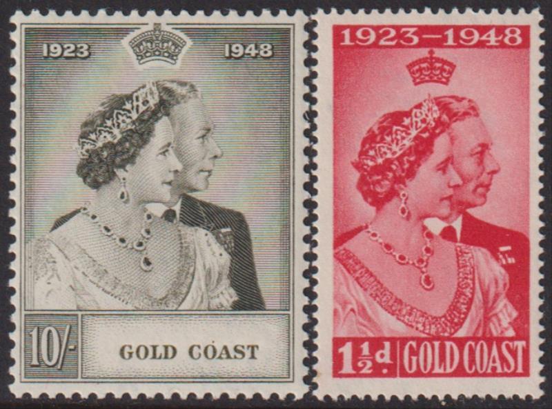 Gold Coast 1948 Silver Wedding set. SG cat £24+. MUH. (Image)