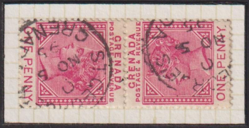 Grenada 1887 1d QV carmine (POSTAGE & REVENUE) Tête-bêche pair. SG 40a. Cat £30. FU. (Image)