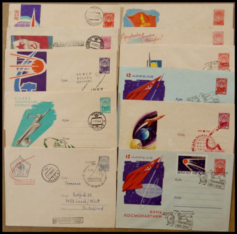 1960-63, 11 various, almost only used image envelopes, mostly with space travel subjects, superb, partly R! (Image)