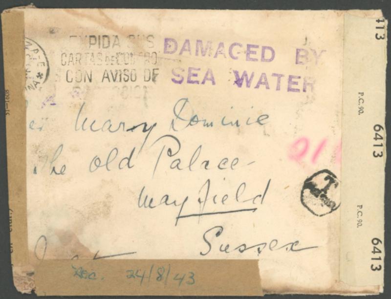 1943, naval warfare Catastrophes letter with two-line cancel DAMAGED BY SEA WATER, very fine (Image)