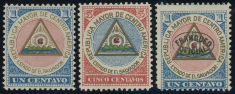 1897, 3 various Commemorative stamps for the Republic Central America, rest of hinge, as usual perforated superb (Image)