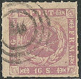 DANEMARK. Percé en lignes. No 7. - TB (cote Yvert : 1000 €) (Image)