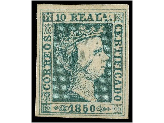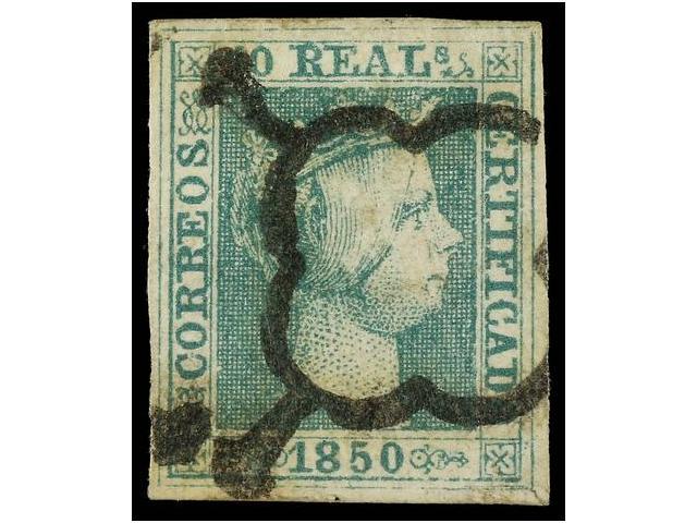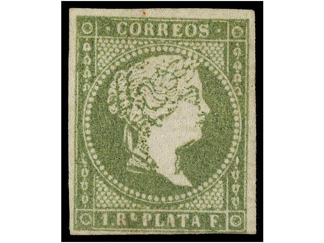 COLONIAS ESPAÑOLAS: ANTILLAS. 1 real verde. Tres grandes márgenes y el inferior ajustado pero completo. Cert. CEM y ECHENAGUSÍA. Ed.5. Cat. 1.200€. (Image1)