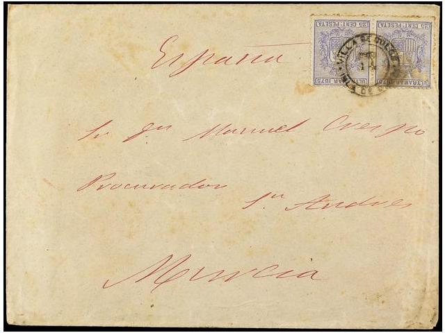 CUBA. 1875. COLÓN a MURCIA. 25 cts. azul (2), mat. VILLA DE COLON/ISLA DE CUBA. Ed.32 (2). (Image1)